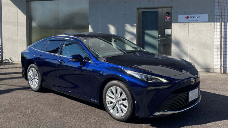 2023年10月に、豊田工場の社用車としてトヨタ自動車の燃料電池自動車(FCEV)「MIRAI」を導入しました。「MIRAI」は、水素と空気中の酸素の化学反応により発生する電気を利用してモーターを駆動させる燃料電池を搭載しており、走行時のCO2排出はゼロとなります。